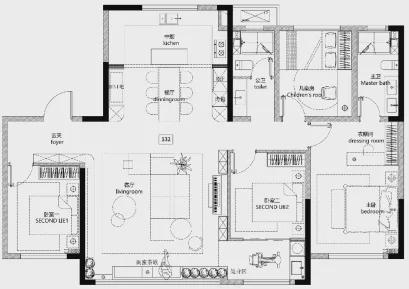 (三)132㎡为四房二厅二卫户型,适合追求更高居住品质与居住环境的客户群体。